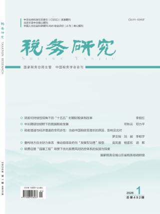 2026年 第1期 学习贯彻党的二十届四中全会精神 财政可持续性视角下的“十五五”时期财税体制改革* 李旭红 中长期规划视野下的我国税收发展* 邓秋云 邓力平 框架、方向与路径:“十五五”规划背景下促进高质量发展的法治财税建设* 王桦宇 本刊特稿 税收增速与经济增速的非同步性:当前中国税收低增长的原因、影响及应对* 罗志恒 刘昶 李明宇 税制改革 重构地方自主财力体系 推动县级政府向“发展型治理”转型* 庞凤喜 杨家欢 涵默 增加地方自主财力视角下地方附加税改革方案探析* 刘金东 魏雨丹 褚洪良 地方附加税制度构建的思考与建议* 彭晓洁 何彬 韦宏璋 调查研究 零工经济引发的税收治理挑战与应对* ——基于福建省网络货运领域的分析 国家税务总局福建省税务局调研组 税费征管“强基工程”背景下优化税费风险防控体系的实践与探索 国家税务总局山东省税务局调研组 环球税收 世界税收营商环境发展趋势与我国税收营商环境优化* ——基于世界银行B-Ready纳税指标的分析 王婷婷 共享和零工经济税收治理的国际比较及经验借鉴* 燕晓春 研究探索 环境保护税能提升重污染行业的资源配置效率吗?* 刘晔 刘玥 做强国内大循环目标下的税收政策优化探析* 陈高 张燕 研发费用加计扣除政策对企业合作创新的影响* ——基于A股上市公司的经验证据 包健 李芳迪 税收管理 税收政策不确定性带来的税收风险及防控 曹佩浩 青税经纬 企业税收遵从对ESG评级分歧的影响探析* 李甜甜 程婧妍 王帆 “以数治税”驱动“以税资政”:基本机理、存在问题与优化路径* 陈涵 詹江 谢家智